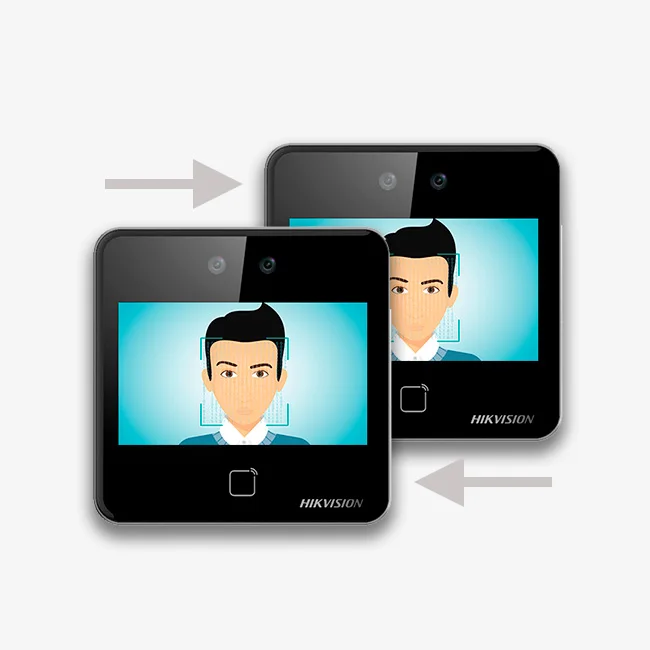 Obiectiv dublu FullHD cu unghi larg anti-înșelăciune. Potrivit pentru organizarea controlului accesului și urmăririi timpului într-un birou sau depozit. Pereche inclusă: Intrare-Ieșire. Metoda de autentificare: față sau față + card.